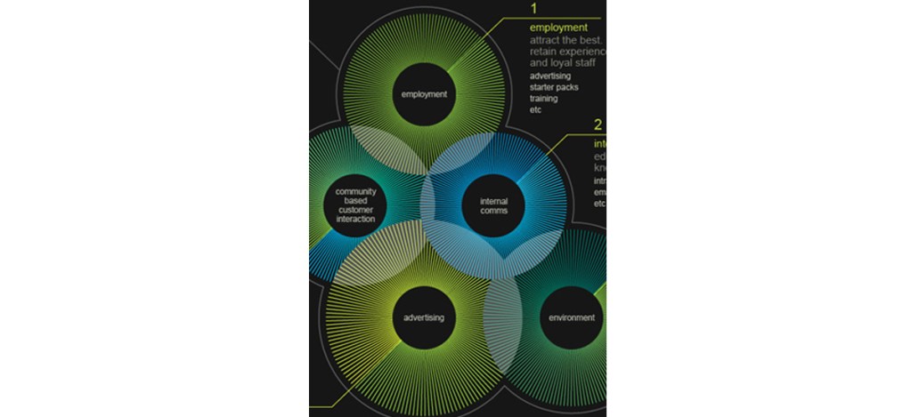 这些原因揭示了设计公司的价值并不是留于设计出表面装饰华丽的产品,而是如何经营、通过服务为客户创造价值。设计的关键并不是因为它能让事物的外观更美丽或者获取什么奖项,而是在飞速发展的市场环境下,如何满足消费者不断更新的观念和潜在的需求。人们总是不断要求追加服务而企业也希望不断提高其无形资产价值。设计公司要做的是站在沟通双方的角度上,更充分地理解什么是商品,什么是顾客,而什么又是组织管理等等看似基本的问题,为企业解决困扰,从根本上为他们提供解决方案,因此设计元素是基于这一系列研究,通过深入挖掘形成的,决不是浮于表面的东西。