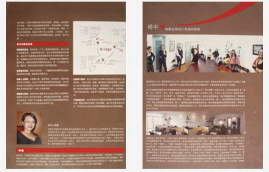 桥中是一个新型的设计服务公司,其服务内容囊括除了传统产品造型设计之外的一切与设计相关的活动,可以视作一个不做设计的设计公司,也可以视作一个真正理解了设计的设计公司。工业设计的根本不在于产品造型,而是借助设计进行资源整合。桥中恰恰利用了其国内外的设计资源优势,成为国内第一个敢吃螃蟹的人。我很欣慰地看到国内出现这样的公司,引导大量的国外设计家走进来,让他们了解中国;同时,我也在思考,如何帮助中国的企业走出去,让世界了解中国呢?