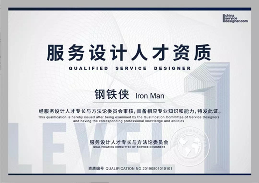 2019年10月,服务设计人才资质体系由桥中和成功设计平台联合全球服务设计联盟上海站携手发起,北京光华设计发展基金会支持,旨在确认合格服务设计人才、提升服务设计人才的市场认知、培养本土服务设计人才、建立服务设计人才资源库、落地服务设计价值、用服务设计助力中国发展。 2020年5月,融合了资质申请、人才链接、培训课程、学习推荐的服务设计人才资质网站(http://chinaservicedesigner.com/)上线。