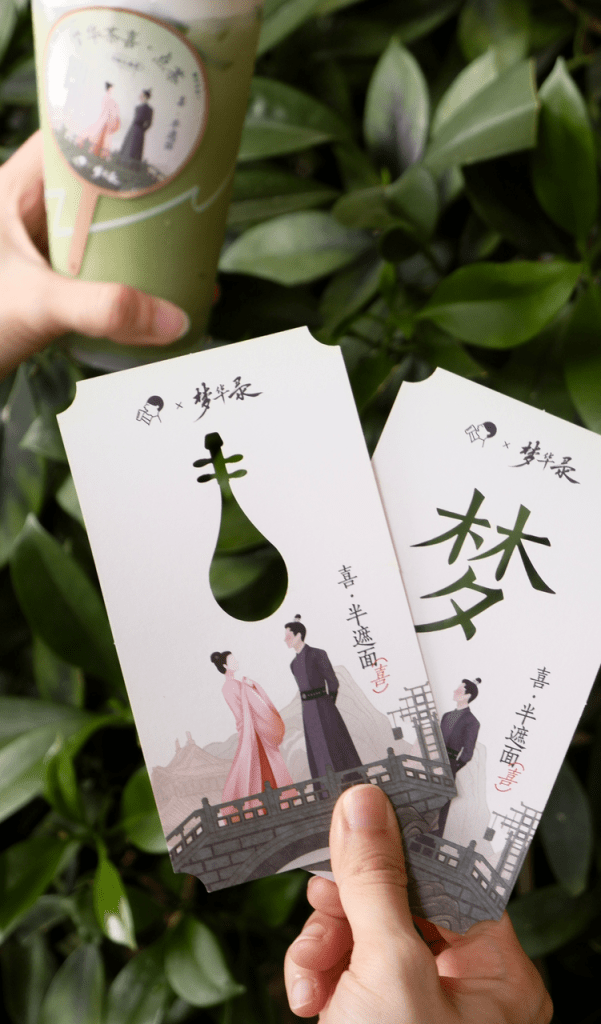 这一创新,更加让用户摸到了联名合作的天花板——赵盼儿成为「喜茶×半遮面」的的掌柜,还卖着自己拿手的紫苏饮子,让人找不出一点儿瑕疵。