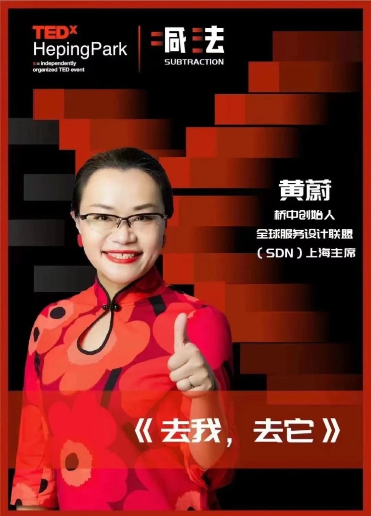 TEDx和平公园 ,赞45 桥中创始人黄蔚作为特邀嘉宾参加,并在大会第三篇章《自我与实现》中发表了名为《去我,去它》的主题演讲。