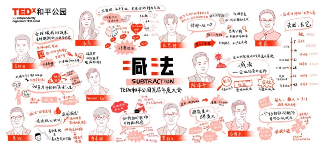 这些都将重新塑造人们的价值追求和生活理念,进而影响社会发展趋势…… 针对这些现象和思考,TEDx和平公园开启首届年度大会,并命名主题为“减法”。