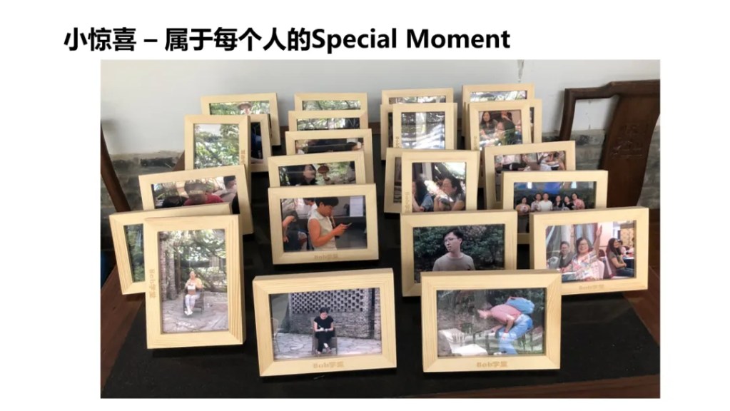 – 创造人生第一次体验: 他还用服务设计为自己 BOB 学堂的学员,每年策划两次难忘的聚会,每次活动都给到他们从未有过的人生第一次体验,比如第一次演话剧,第一次在湖中划船,第一次玩亲子桌游……