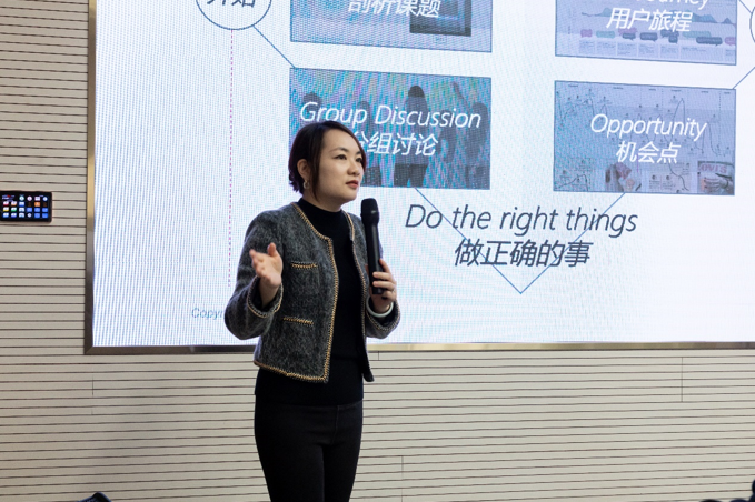 桥中合伙人、全球服务设计联盟认证高级导师任唐胤为大家介绍了服务设计和用户体验的相关知识及方法工具,引导大家一步一步地完成设计任务。