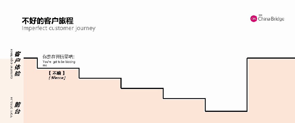 面对不好的体验,他们一开始并不会发出质疑之声,但心里可能会感到不满:“这不是在开玩笑吧!” 如果问题迟迟没有得到解决,他们的情绪会逐渐陷入谷底,充满困惑、焦虑和无助:“到底怎么回事?”“到底由谁负责?”“现在咋回事儿?”“我该怎么办呢?” 当负面体验达到谷底,捱到最后,他们心里已经做好了决策,嘴里虽“不响”,甚至高兴地默念:“太好了!终于结束了!”但这时,也是他们离开的时候。