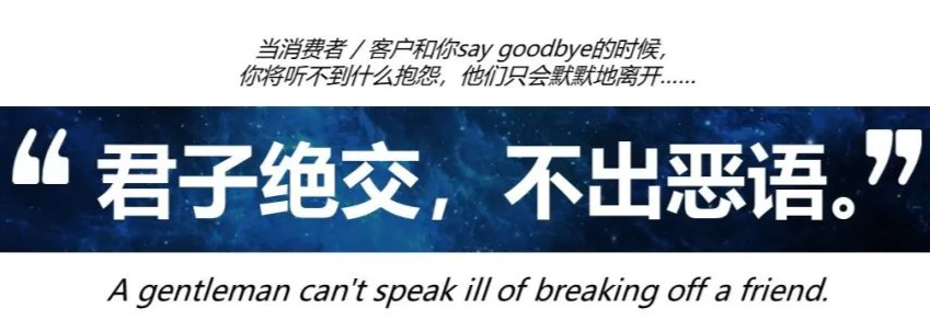 “君子绝交,不出恶语。” 对于企业,当“不响”的消费者 / 客户和你 say goodbye 时, 你将听不到什么抱怨,他们只会默默地离开……