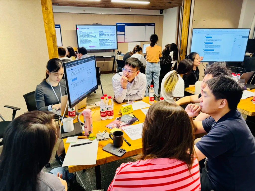 一些小组的创新设计引发了热烈讨论,展示了AI技术在服务设计中的强大潜力。一位学员风趣地说道:“如果这个方案能落地,我愿意成为第一个用户!”
