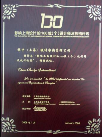 The award ceromony was held in Huixing Plaza on January 29th,2008. In all, 100 designers or design organizations were announced by Mr. Qinxiang DONG from Shanghai Economic Committee as “The Most Influential one hundred Designers and Organizations to Shanghai”. Mr. Jinpeng LE from Shanghai Economic Committee, Mr. Zengqiang HE and Mr. Zhicai GE from Shanghai Industrial Design Association, Mr. Guangyu WU from Shangtex Holding Co.,Ltd, Vice Governor of Yangpu District Mr. Donghai TANG and all the awarding designers and organizations attended the meeting.