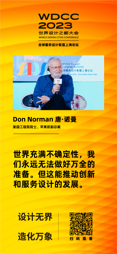 During a roundtable discussion, thought leaders including Don Norman (National Academy of Engineering member and former VP at Apple), Birgit Mager (SDN President), Srini Srinivasan (former WDO President), and Rudy Wimmer (Shanghai NYU Visiting Professor) explored how service design can contribute to urban development and societal value creation.