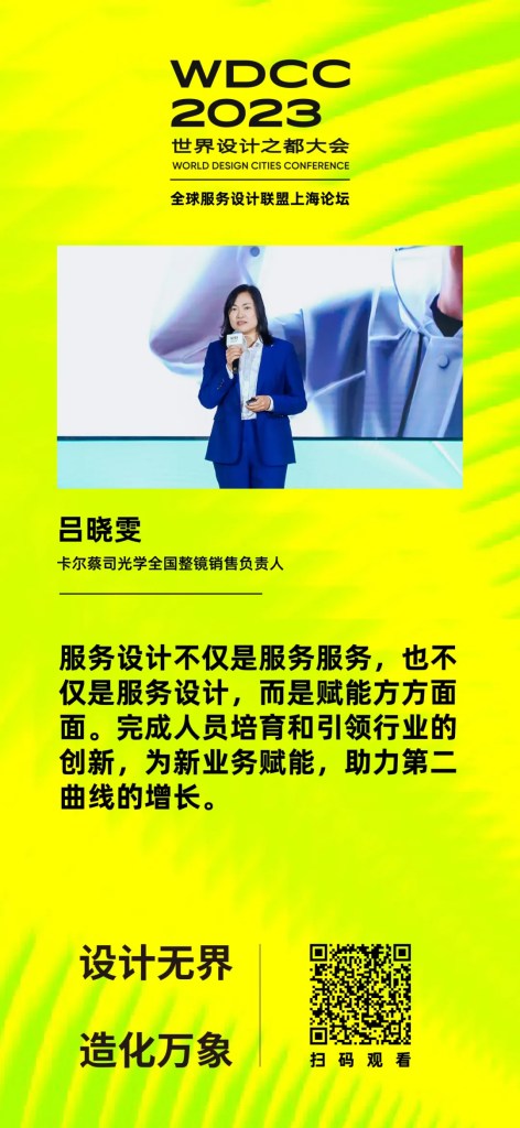 Xiaowen Lü, National Head of Complete Eyewear Sales at Carl Zeiss Vision, highlighted that talent limitations and boundary constraints often lead to vast disparities in product development. She demonstrated how service design could support talent cultivation, drive industry-leading innovation, and empower new business models, enabling organizations to achieve second-curve growth.