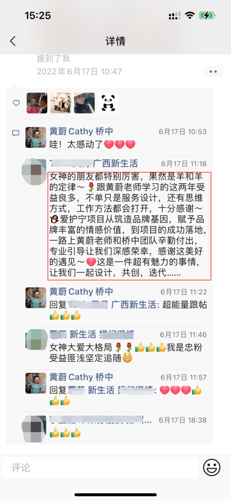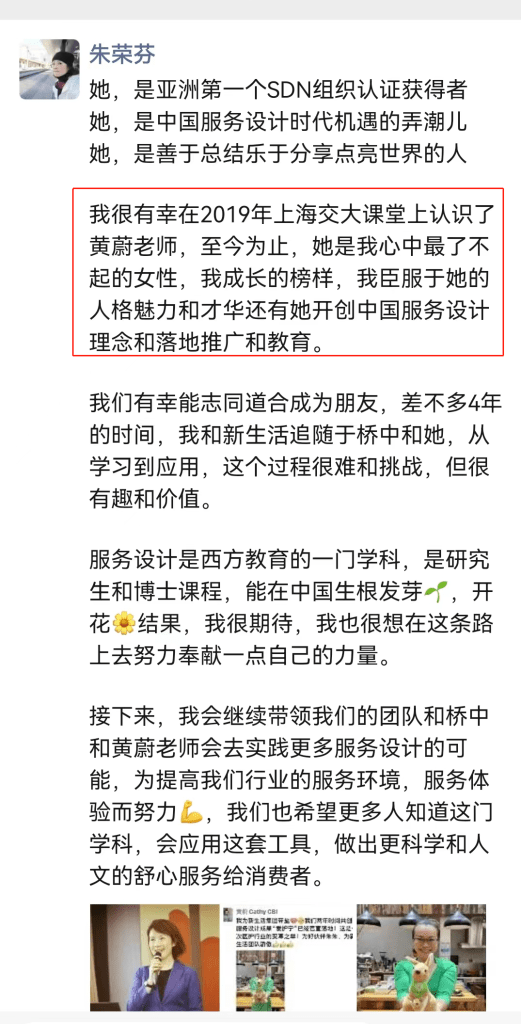 新生活的董事长朱荣芬博士在朋友圈与桥中创始人黄蔚真情联动: